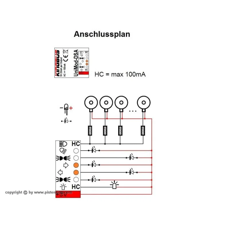 Uitgangen gemarkeerd met HC kunnen meerdere LED’s aan tot 100mA max.