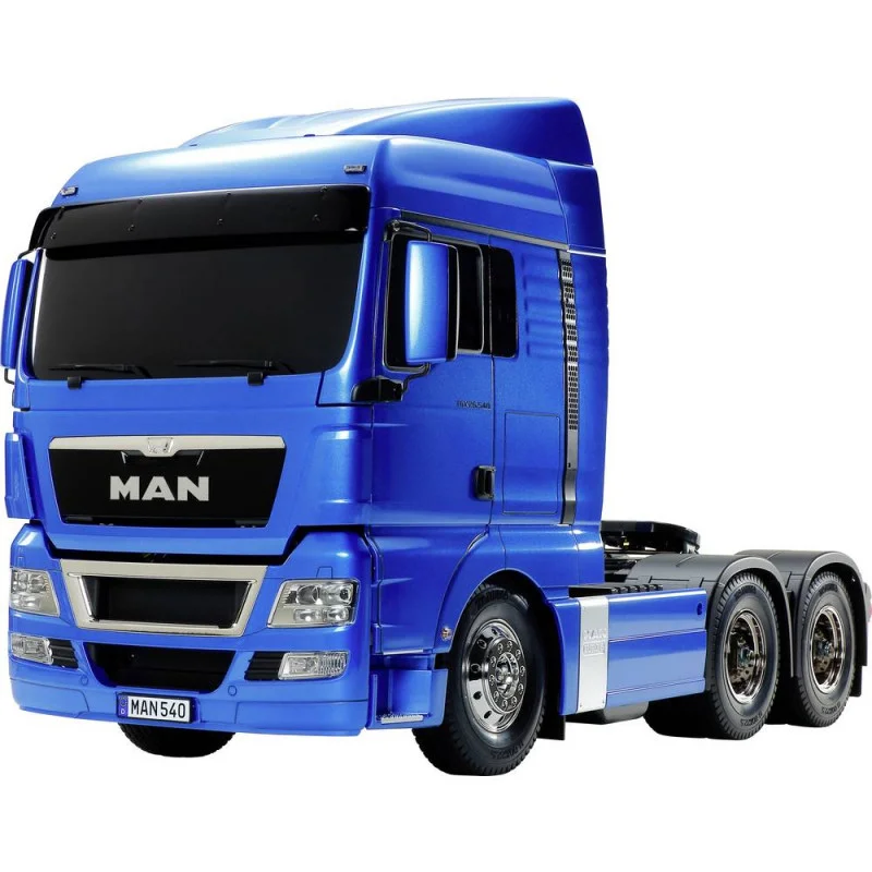 TAMIYA heeft de MAN TGX 26.540 een facelift gegeven zodat de MAN nu in de Euro 5-versie van 2013 verschijnt. Opvallend is de nieuwe gril met het grote MAN logo. De Man Truck is de eerste duitse 3-assige trekker. De 526 mm lange en ongeveer 3 kilogram kit van de in 2007 gebouwde MAN vrachtwagen, die trouwens in 2008 gekozen werd als de truck van het jaar, kan in verschillende indrukwekkende combies gebouwd worden. Onder de voorwaartse kantelbare cabine zit de robuuste Tamiya Truck-technologie. Een krachtige elektromotor geeft door de schakelbare 3-versnellingsbak haar power aan de beide achterassen door. Een zeer gedetailleerde aluminium (ladder) frame geeft het model de nodige stabiliteit. Dankzij het hoge eigen gewicht en de stabile opleggerschijf kan de MAN TGX gekoppeld worden met talrijke Carson/ Tamiya trailers. Met de optionele multifunctionele unit kunnen bijna alle geluids en licht details van het model worden gesimuleerd.